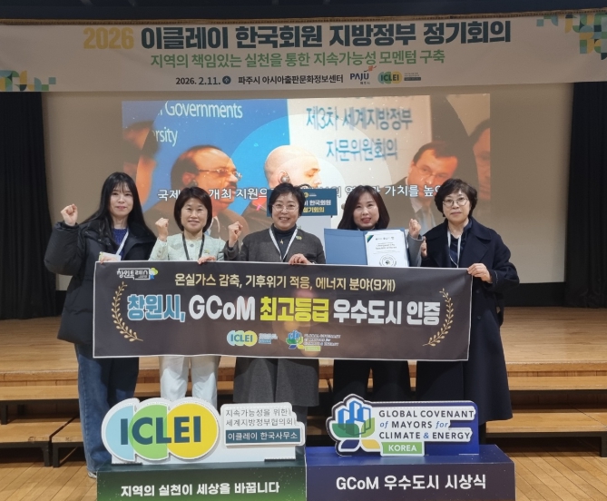 [시사토픽뉴스] 창원특례시는 글로벌 기후·에너지 시장협약(GCoM) 최고등급 도시로 선정돼, 2월 11일 세계지방정부협의회(이클레이)가 주최하는 '지방정부 정기회의‘에서 2025년도 이행평가 최고등급을 수상했다.