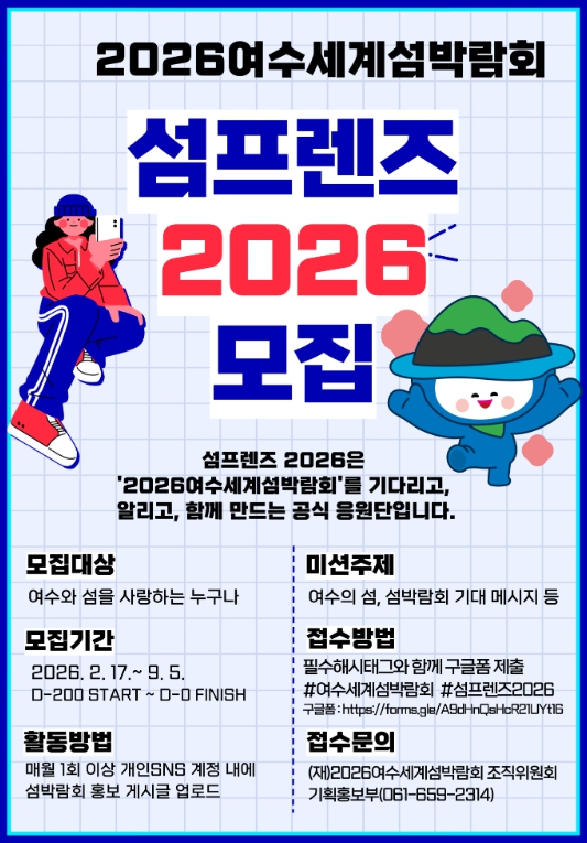 [시사토픽뉴스]2026여수세계섬박람회조직위원회가 2026여수세계섬박람회 공식 응원단 ‘섬프렌즈’를 모집한다.