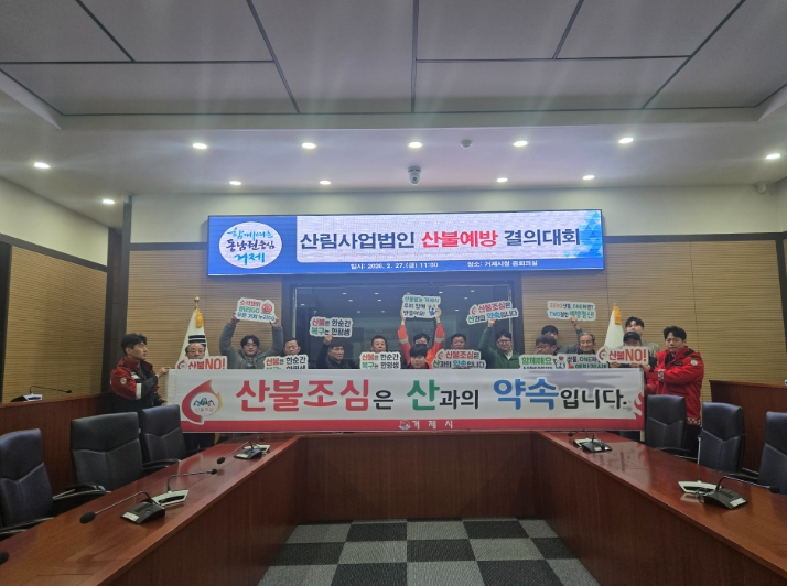 [시사토픽뉴스]거제시는 봄철 산불조심기간 운영에 따라 산림사업 현장의 안전관리 강화를 위해 '산림사업법인 산불예방 대책회의 및 결의대회'를 개최했다.