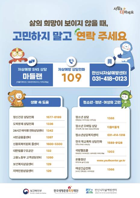 안산시자살예방센터 자살예방 상담전화 디지털 홍보자료