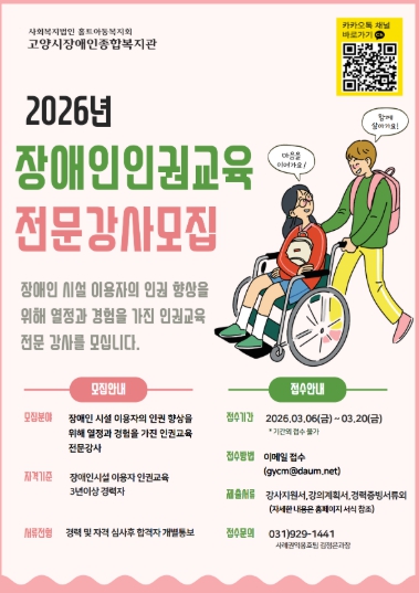 고양시장애인종합복지관, ‘2026년 고양시 장애인시설 이용자 인권교육’수행기관 선정