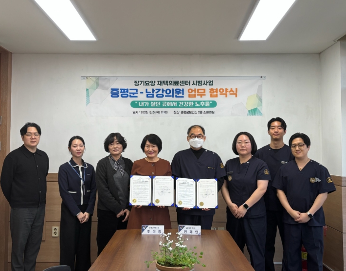 [시사토픽뉴스]충북 증평군보건소는 5일 보건소에서 남강의원(원장 연재현)과 ‘장기요양 재택의료센터 시범사업 협약’을 체결했다고 밝혔다.