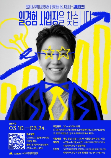 참여업체 모집은 3월 10일부터 24일까지며, 대구시 청년센터 홈페이지 또는 대구청년 커뮤니티 포털 ‘젊프’(dgjump.com)를 통해 온라인으로 신청받는다.