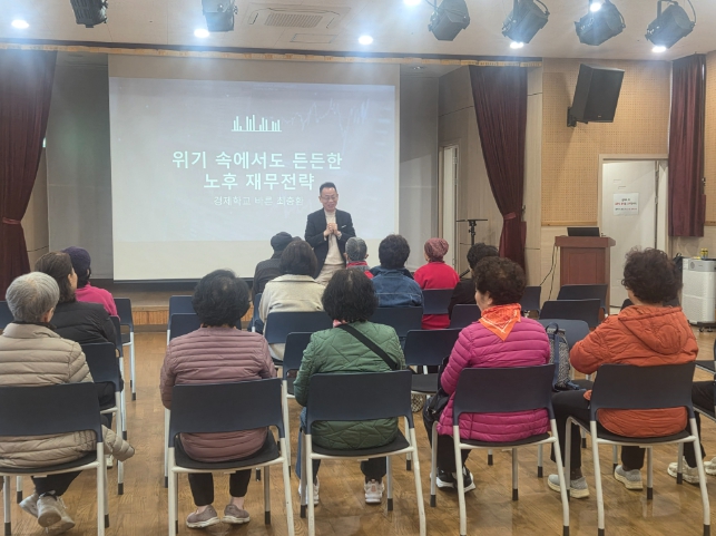 [시사토픽뉴스] 울산 동구 노동자지원센터는 3월 26일 오전 10시 30분 방어진노인복지관 3층 강당에서 복지관 어르신 40여 명을 대상으로 ‘노후를 위한 경제 이야기’라는 주제로 생애 설계 교육을 진행했다.