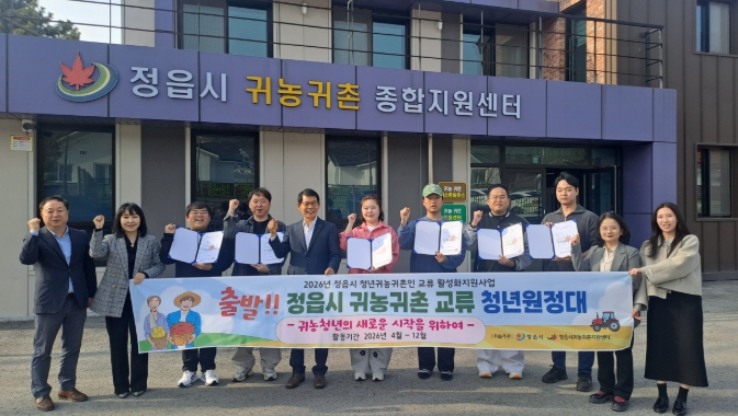 [시사토픽뉴스] 정읍시가 청년 귀농·귀촌인들의 안정적인 정착과 지역 농촌 활성화를 위해, 27일 귀농귀촌종합지원센터에서 ‘2026년 귀농·귀촌 청년 교류 원정대’ 발대식을 개최했다.