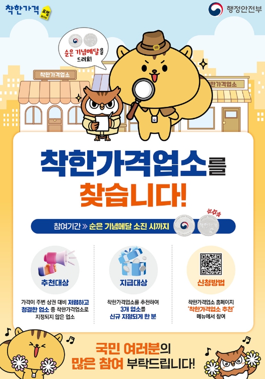 시 관계자는 “고물가 상황 속에서도 착한가격업소가 지역 경제의 든든한 버팀목 역할을 하고 있다”며, “앞으로도 지속적인 발굴과 지원을 통해 시민과 소상공인이 함께 상생할 수 있는 환경을 만들어가겠다”고 말했다.