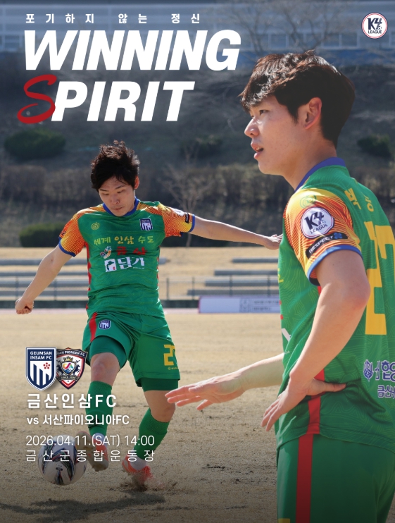 [시사토픽뉴스] 금산인삼에프씨(FC)는 오는 11일 금산종합운동장에서 서산파이오니아에프씨(FC)와 홈경기를 갖는다. 특히, 충남 지역의 자존심이 걸린 ‘충남 더비’로 격돌하며 축구 팬들의 뜨거운 관심을 모으고 있다.