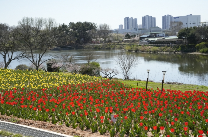 [시사토픽뉴스] 익산 도심 속 친수 공간인 '신흥공원'이 화려한 튤립 물결과 유아숲체험원 재개장, 그리고 중앙체육공원을 잇는 보행교까지 어우러지며 익산의 새로운 '녹색 정원 거점'으로 거듭나고 있다.