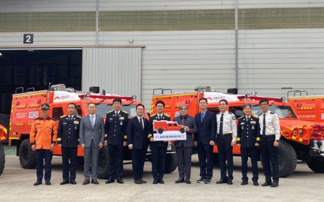 [시사토픽뉴스]경상남도 소방본부는 희망브리지 전국재해구호협회로부터 국민 성금으로 제작된 산악 지형 특화 중형산불진화차 2대를 기탁받아 산청·하동소방서에 배치하고 본격 운용에 들어간다고 9일 밝혔다.