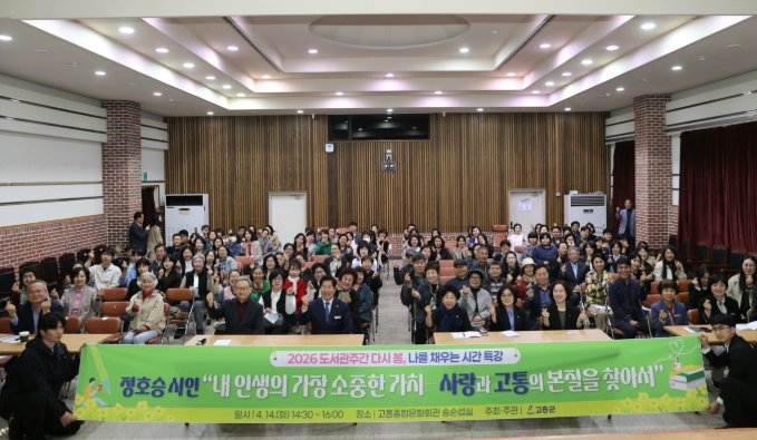 [시사토픽뉴스] 고흥군은 지난 14일 고흥종합문화관 송순섭실에서 ‘2026 도서관 주간, 다시 봄, 나를 채우는 시간’의 첫 프로그램으로 군민 170여 명이 참여한 가운데 북토크를 개최했다.