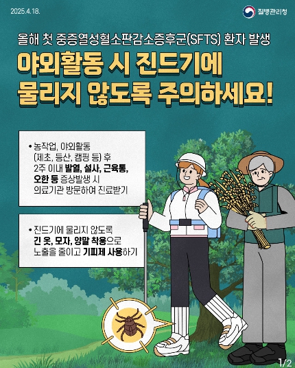 봄철 야외활동 증가로 중증열성혈소판감소증후군(SFTS) 주의