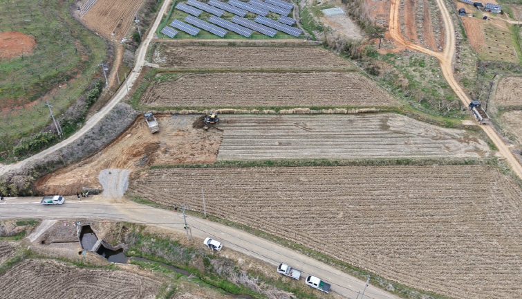 지난달 말 신축에 들어간 ‘영암군 농기계 임대 동부사업소’의 기초토목공사 단계가 한창이다.