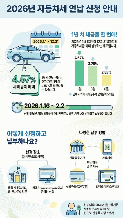 영암군 자동차세 1월 연납으로 4.57% 세액공제 받으세요