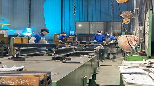 남동공단 철강 제조 공장에서 근로자가 철판 가공 작업을 하고 있다.