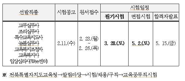 [시사토픽뉴스]전북특별자치도교육청은 교육공무직원 채용시험을 준비하는 응시자의 편의를 위해 2026년 교육공무직원 채용시험 일정을 4일 누리집을 통해 사전 안내했다.