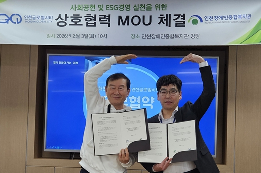 김민석 인천장애인종합복지관장은 “장애인들이 지역사회 구성원으로 삶을 영위하는 데 ㈜인천글로벌시티가 중요한 역할을 할 수 있을 것으로 기대한다”며 “지역사회 장애인 삶의 질을 높이고 지속 가능한 복지를 실현하는 데 뜻깊은 협력을 이어가길 바란다”고 말했다.