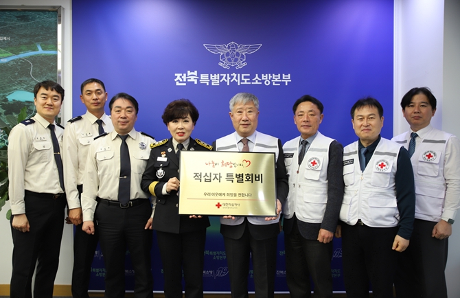 [시사토픽뉴스]전북특별자치도소방본부는 4일 도청에서 대한적십자사 전북지사에 2026년도 대한적십자사 특별회비 300만원을 전달했다.