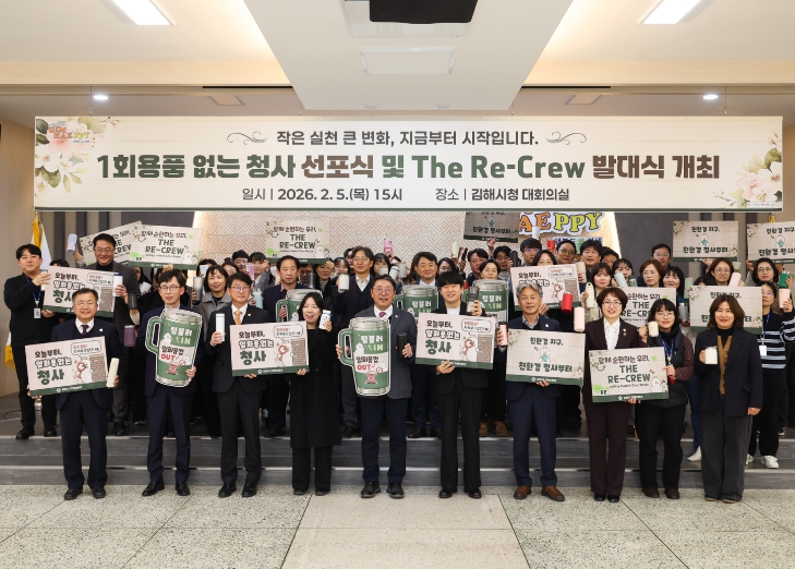 [시사토픽뉴스]김해시는 5일 오후 3시 대회의실에서 ‘1회용품 없는 청사’ 선포와 함께 자원순환 실천 조직인 ‘The Re-Crew’ 발대식을 개최했다.