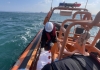 수산물 방사능 검사를 위해 직접 해수를 채취하고 있다.