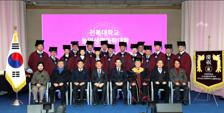 [시사토픽뉴스]부안군과 전북대학교, 산업체가 협력하여 지역 맞춤형 인재를 양성하는 재교육형 계약학과 ‘전북대 부안캠퍼스 에코농산업벤처시스템학과’가 23일 부안예술회관 다목적강당에서 2025학년도 제2회 학위수여식을 성황리에 개최했다.