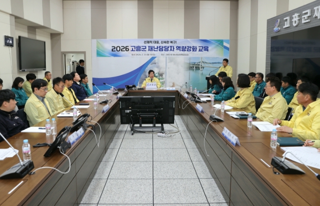[시사토픽뉴스]고흥군은 23일 군청 재난종합상황실에서 읍·면 재난업무 팀장과 담당자 등 40여 명을 대상으로 ‘2026년 재난업무 담당자 역량강화 교육’을 실시했다고 밝혔다.
