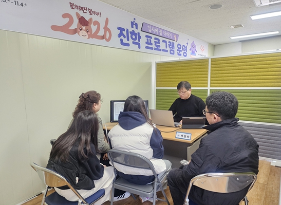 여수시가 마련한 ‘2026 예비 중3 맞춤형 1:1 진로·진학 컨설팅’에서 참여 학생과 학부모가 입시와 관련된 유익한 정보를 제공받고 있다.