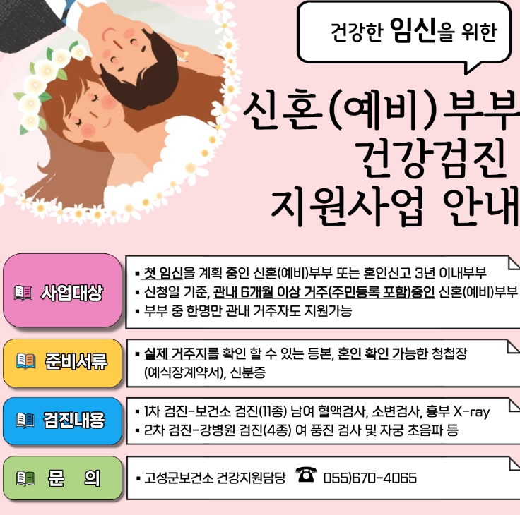 건강한 임신과 출산을 위한 동행 고성군, 신혼(예비) 부부 건강검진 지원