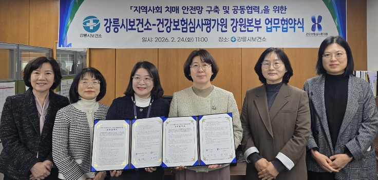 [시사토픽뉴스]강릉시보건소(보건소장 권혁여)는 지난 24일 건강보험심사평가원 강원본부(본부장 정선호)와 지역사회 치매 안전망 구축 및 공동 협력을 위한 업무협약을 체결했다.