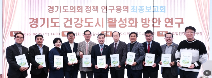한편, 이날 보고회에는 건강도시연구회 소속 김호겸 의원(국민의힘, 수원5), 윤태길 의원(국민의힘, 하남1), 이오수 의원(국민의힘, 수원9) 을 비롯해 관련 전문가들이 참석하여 건강도시 조성을 위한 구체적인 재원 확보 방안과 시민 참여형 ‘건강마을 리빙랩’ 활성화 등에 대해 심도 있는 토론을 펼쳤다.