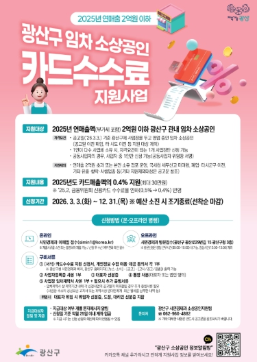 [시사토픽뉴스]광주 광산구가 민생경제 회복을 위해 광산구 임차 소상공인 카드수수료 지원사업을 실시한다.