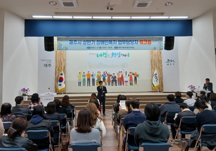 [시사토픽뉴스]제주시는 2월 27일 시청 1별관 회의실에서 시·읍면동 장애인복지 담당 공무원 50여 명을 대상으로 ‘상반기 장애인복지 업무 담당자 워크숍’을 개최했다.