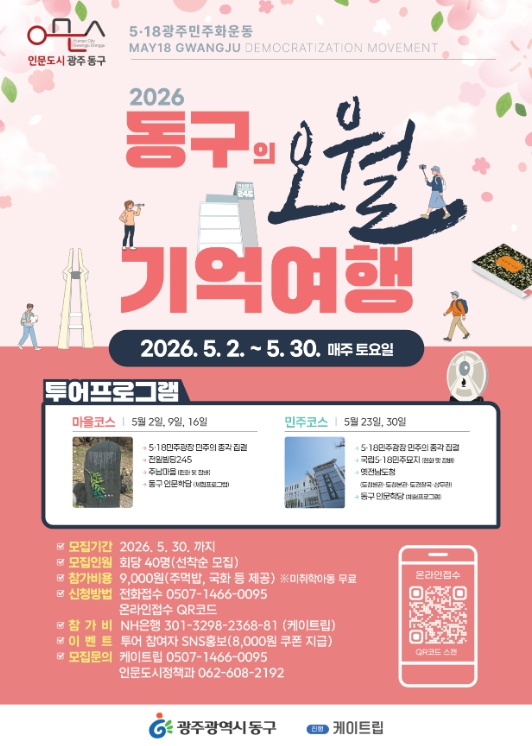 [시사토픽뉴스] 광주 동구는 제46주년 5·18민주화운동을 기념해 5월 한 달 동안 기념 투어 프로그램인 ‘동구의 오월 기억여행’을 운영한다고 밝혔다.