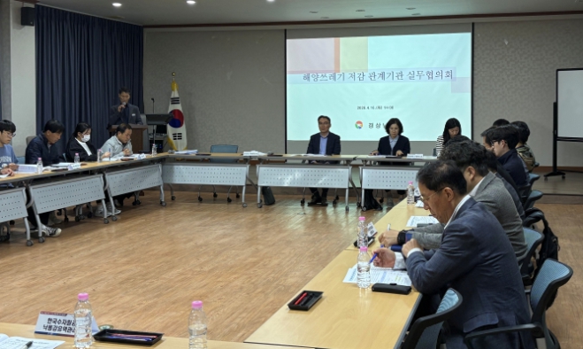 [시사토픽뉴스]경상남도는 16일 수산안전기술원 고성지원에서 도내 연안 시군과 해양쓰레기 관련 유관기관이 참석한 가운데 ‘2026년 상반기 경상남도 해양쓰레기 저감 실무협의회’를 개최하고, 이상기후에 대비한 육상 유입 해양쓰레기 저감 대책을 논의했다고 밝혔다.
