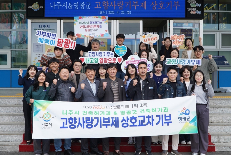 [시사토픽뉴스] 전남 나주시 건축허가과(과장 김훈모)와 영광군 건축허가과(과장 윤상근)는 고향사랑기부제의 정착과 지역의 상생발전을 위해 지난 20일 나주시청에서 상호 교차 기부를 실시했다고 밝혔다.
